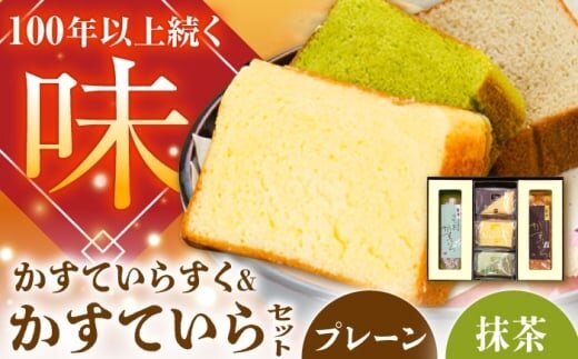 「かすていらすく」と「かすていら」2本(プレーン、抹茶)の詰め合わせセット。