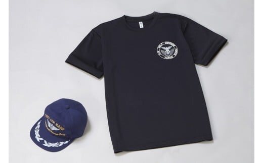 帽子はキャップのフロントにウイングマーク「GIFU AIR BASE」がデザインされています。Tシャツは、速乾の素材で、航空自衛隊マークがついています。