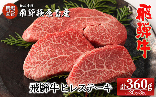 飛騨牛ヒレステーキ 120g×3枚 国産 牛肉 ブランド牛 赤身 ステーキ ギフト 牛 飛騨牛 贈答 ヒレ 牛 飛騨萩原畜産【冷凍】