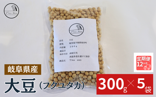 【12ヶ月定期便】大豆(フクユタカ) 1.5kg(300g×5袋)