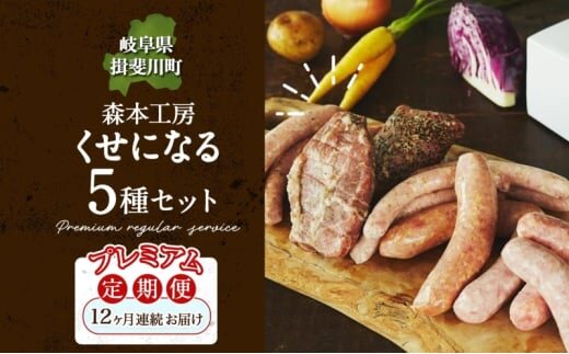 [№5568-0208]定期便 12ヶ月 ハム ソーセージ くせになる定期プレミアム 12ヶ月コース 化粧箱入り 肉 フランクフルト ベーコン BBQ 焼肉 おつまみ ギフト グルメ お取り寄せ 贈答用 ご褒美 本格 手作り 本場 ドイツ 人気 送料無料 森本工房 岐阜県 揖斐川町