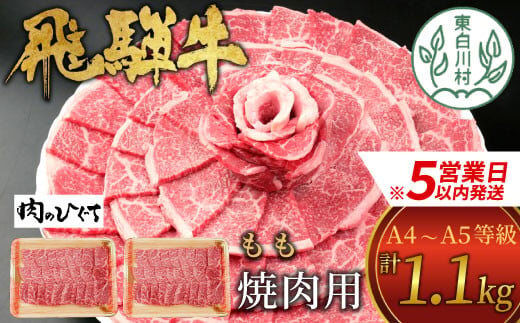 【スピード発送】 飛騨牛 もも 焼肉用 1.1kg 550g×2 A5 A4 国産 牛 冷凍 和牛 牛肉 もも肉 モモ 焼き肉 やきにく 赤身 ギフト 贈答 おすすめ BBQ バーベキュー キャンプ にく お肉 肉 東白川村 岐阜 飛騨 贅沢 霜降り 肉のひぐち 30000円 三万円 すぐ届く 即納 最短発送 最速発送