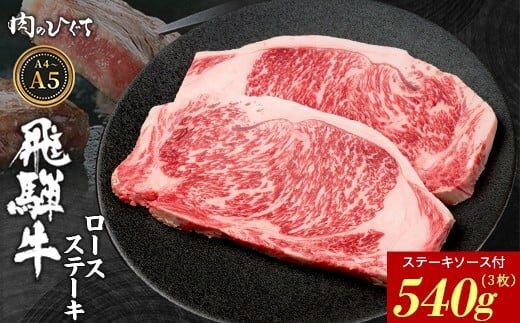 飛騨牛 ロースステーキ 3枚 540g ステーキソース付き A5 A4 国産 牛 冷凍 和牛 牛肉 かた ロース 肩ロース 豪華 ギフト 贈答 にく お肉 肉 東白川村 岐阜 飛騨 贅沢 霜降り 赤身 肉のひぐち