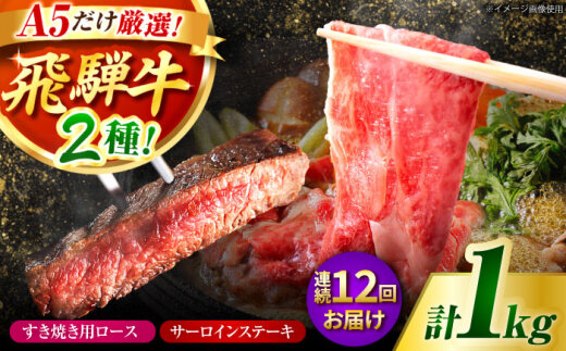 【12回定期】特選飛騨牛ステーキ&すきやき用(1Kgセット) / 飛騨牛 焼肉 ステーキ 肉 すき焼き すきやき 鍋 A5ランク 牛肉 / 御嵩町 / 肉のキング [AVAG013]