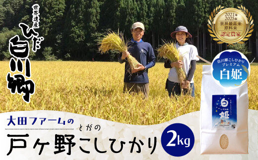 先行予約 令和7年産 白川郷 戸ヶ野のこしひかりプレミアム 白姫 2kg お米 大田ファーム 9000円 [S438]