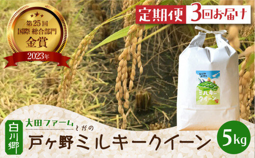 令和7年産 お米 定期便 先行予約 戸ヶ野 の ミルキークイーン 5kg × 3回 白川郷 こだわり 米 精米 みるきーくいーん ごはん おにぎり ご飯 食事 米 白米 弁当 甘い もっちり 3か月 毎月 岐阜県 飛騨 世界最高米 認定農家 大田ファーム 48000円 オンライン申請対応自治体