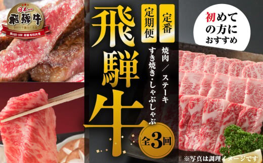 《定期便》全3回 飛騨牛 定番( 焼肉 / すき焼き / ステーキ)[飛騨高山ミート] | 冷凍真空パック 肉 お肉 すきやき 黒毛和牛 和牛 人気 おすすめ 牛肉 [MZ102]