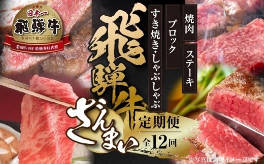 《定期便》全12回 飛騨牛 ざんまい(ステーキ /焼肉 / すき焼き/切り落とし/ブロック)[飛騨高山ミート] | 冷凍真空パック 肉 お肉 すきやき 黒毛和牛 和牛 人気 おすすめ 牛肉[MZ106]