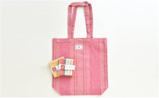 【遠州綿紬】はんかち2枚&エコバッグ 赤系 [№5786-1116]