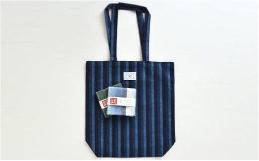 【遠州綿紬】はんかち2枚&エコバッグ 青系 [№5786-1117]