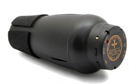 ベストブラスが創業以来、常に最先端の消音技術に挑戦し、それを反映させ続けている商品がe-Brass(イーブラス)です。e-Brassを楽器のベルに取り付け、普段通りに吹けば、外に漏れ出る音量は小声での会話程度にまで消音(-30dB~-35程度)されます。楽器を吹きたいけれど、周りに聞かれるのが恥ずかしかったり、ご近所さんには迷惑を掛けたくない。そんな時はe-Brassの出番です。このポータブル防音室があれば、いつでもどこでも楽器の演奏ができます。