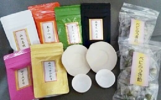 太田園の天竜茶 30g×9袋、茶皿×2個、茶飴×2袋 [№5786-1633]