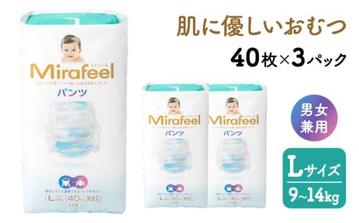おむつ ミラフィール Lサイズ 9~14kg 40枚 3パック (120枚) パンツタイプ 乳幼児用 おむつ オムツ パンツ 雑貨 ベビーグッズ ベビー用品 赤ちゃんグッズ 赤ちゃん用品 日用品 消耗品 生活消耗品 贈り物 プレゼント mirafeel 静岡 静岡県 浜松市[№5786-3627]