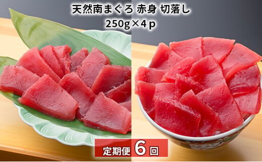 【定期便 6回】※月1回、6ヶ月連続でお届けします。 天然南まぐろ赤身切落し 産地 台湾 250g×4パック 計1kg 加工地:浜松市 ※到着後、冷凍7日、解凍後2日 |