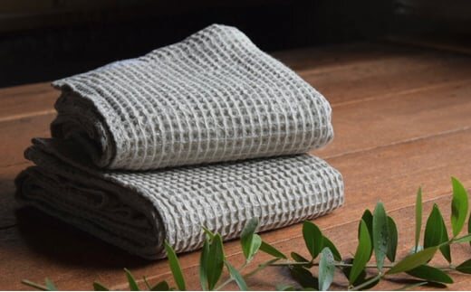 素材はリネン100%使用。リネンは吸水性・速乾性・抗菌性・防臭性に優れた、タオルに最適な素材です!ざっくりとした素材感でワッフル生地特有の肌触りとさっと拭ける抜群の吸水性がやみつきになるリネンワッフルタオル。乾きやすいため、梅雨の時期やお出かけの際にも重宝します。どこよりもふっくらとした立体感のでる生地に仕上げました。使い込むことでより馴染んでいくリネン好きにはたまらない一品。