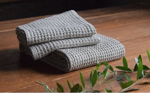 リネンワッフルタオル バスタオル1枚(約110cm×70cm)&フェイスタオル2枚(約78cm×36cm) リネン100% キナリ 日本製 遠州織物 |