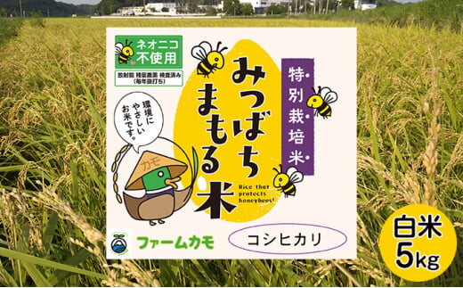 【2025年10月上旬より順次発送】雄踏ファームカモ産「特選みつばちまもる米」5kg コシヒカリ お米 ご飯 主食 ライス お弁当 おにぎり もちもち [№5786-4761]