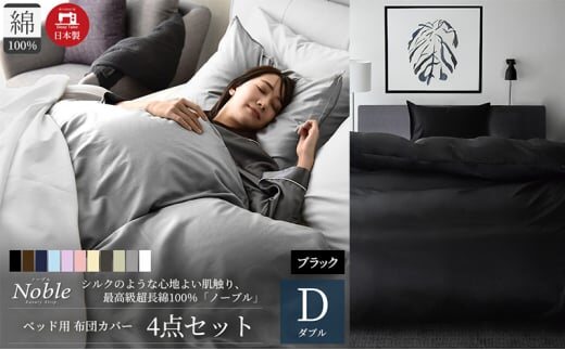 超長綿100% シルクのような艶「ノーブル」 ベッド用布団カバー 4点セット ダブルサイズ ブラック [№5786-5637]
