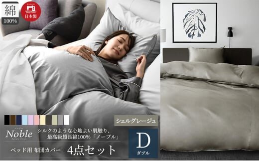 超長綿100% シルクのような艶「ノーブル」 ベッド用布団カバー 4点セット ダブルサイズ シェルグレージュ [№5786-5642]