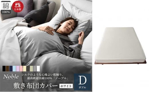 日本製 超長綿100% シルクのような艶 敷き布団カバー ダブルサイズ ホワイト「ノーブル」 [№5786-5654]