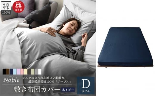 日本製 超長綿100% シルクのような艶 敷き布団カバー ダブルサイズ ネイビー「ノーブル」 [№5786-5659]