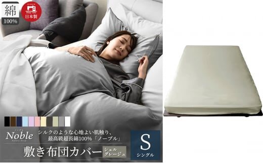 日本製 超長綿100% シルクのような艶 敷き布団カバー シングルサイズ シェルグレージュ ノーブル [№5786-5672]