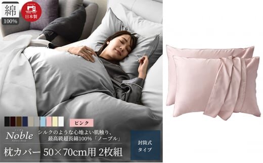 超長綿100% シルクのような艶 枕カバー 2枚組 50×70cm枕用 ピンク「ノーブル」 [№5786-5688]