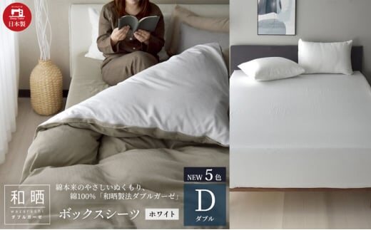 綿100% 和晒製法ダブルガーゼ ボックスシーツ ダブルサイズ ホワイト「和晒」 [№5786-5694]
