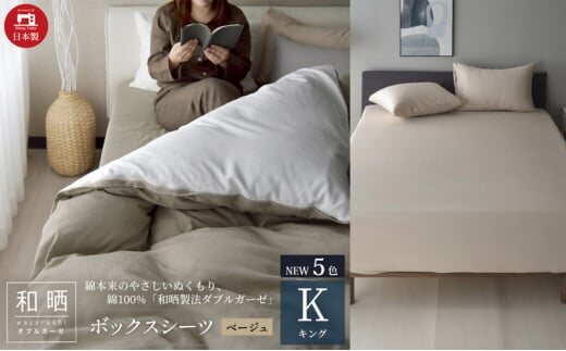 綿100% 和晒製法ダブルガーゼ ボックスシーツ キングサイズ ベージュ「和晒」 [№5786-5700]