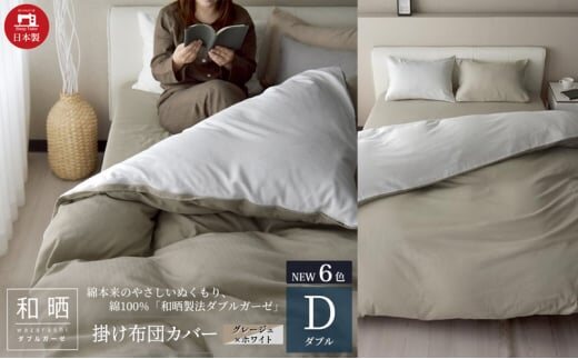 綿100% 和晒製法ダブルガーゼ 掛け布団カバー ダブルサイズ グレージュ×ホワイト「和晒」 [№5786-5717]