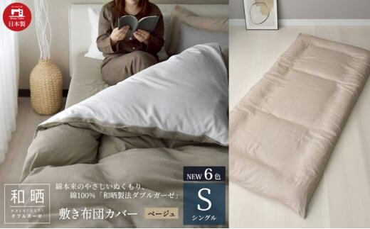 綿100% 和晒製法ダブルガーゼ 敷き布団カバー シングルサイズ ベージュ「和晒」 [№5786-5744]