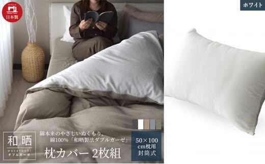 綿100% 和晒製法ダブルガーゼ 枕カバー2枚組 50×70cm枕用 ホワイト「和晒」 [№5786-5754]