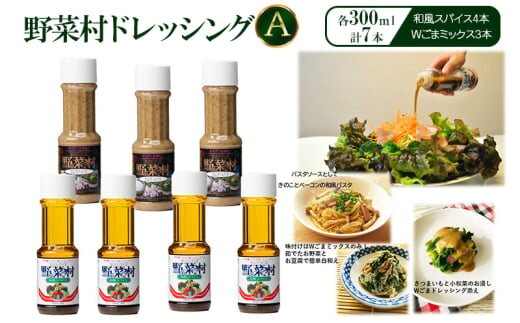 野菜村ドレッシング A(和風スパイス4本、Wごまミックス3本)各300ml 計7本 セット 静岡 浜松市[№5360-0203]