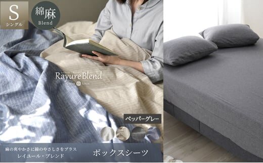 日本製 ボックスシーツ シングルサイズ リネン&コットン 綿 麻 レイユール・ブレンド 「ペッパーグレー」 寝具 [№5786-5891]