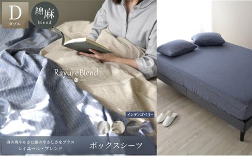 日本製 ボックスシーツ ダブルサイズ リネン&コットン 綿 麻 レイユール・ブレンド 「インディゴベリー」 寝具 [№5786-5900]