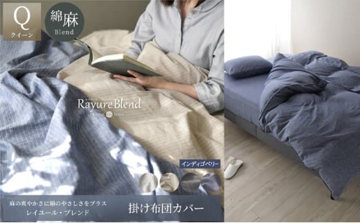 日本製 掛け布団カバー クイーンサイズ リネン&コットン 綿 麻 レイユール・ブレンド 「インディゴベリー」 寝具 [№5786-5904]