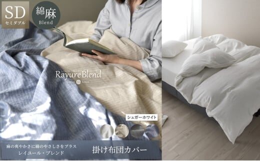 日本製 掛け布団カバー セミダブルサイズ リネン&コットン 綿 麻 レイユール・ブレンド 「シュガーホワイト」 寝具 [№5786-5909]