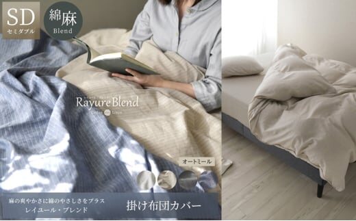 日本製 掛け布団カバー セミダブルサイズ リネン&コットン 綿 麻 レイユール・ブレンド 「オートミール」 寝具 [№5786-5910]