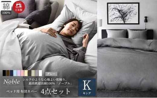 超長綿100% シルクのような艶 ノーブル ベッド用 布団カバー 4点セット キングサイズ グレー 静岡 浜松市 [№5360-0406]