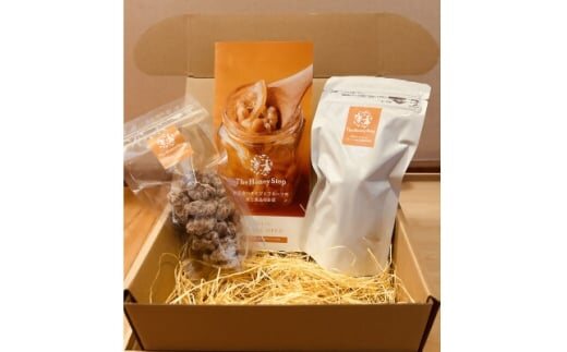 伊豆産ハチミツとお砂糖で作った、胡桃のハチミツキャラメリゼ(キャラメル味とほうじ茶味)をセットにして、