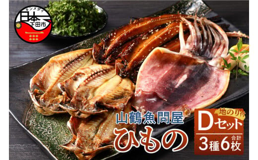 【2025年9月30日受付終了】山鶴魚問屋ひものDセット(3種類・地のり) [干物詰め合わせ セット 無添加 減塩 あじ いか一夜干し さんまみりん干し 地のり 3種 6枚 惣菜 おつまみ おかず 簡単 贈答 お取り寄せ 魚 静岡 伊豆 下田]