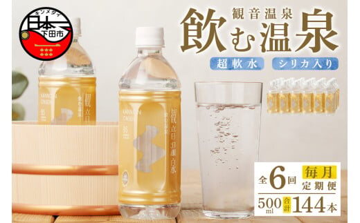 <観音温泉>飲む温泉 観音温泉 500ml (24本入) 1ケース 定期便 6ヶ月 毎月 [水 500ml 温泉水 飲む温泉水 24本 1ケース 国産 超軟水 美容 健康 料理 シリカ 飲むシリカ ミネラルウォーター 常温保存 備蓄 保存水 静岡 伊豆 下田市]