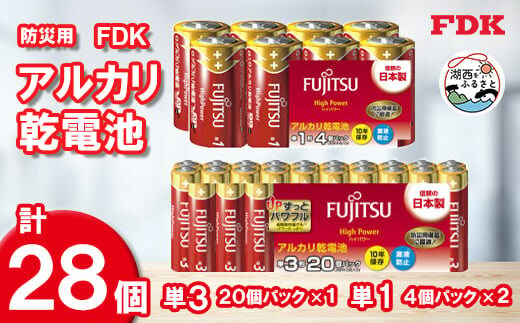 <単1&単3>防災用アルカリ乾電池_計28個 電池セット【1392542】