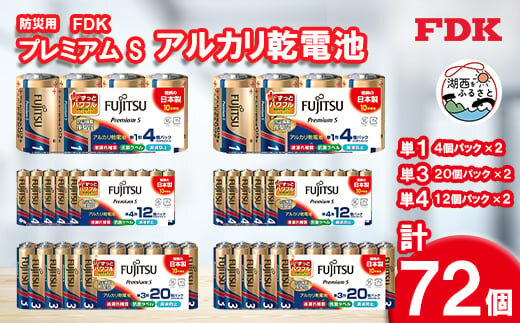 防災用プレミアムSアルカリ乾電池セット_計72個 (単1・単3・単4) 電池 セット_電池 乾電池 アルカリ電池 アルカリ乾電池 でんち プレミアムS 単一形 単三形 単四形 単1 単3 単4 災害 備蓄 防災 非常 10年保存 アルカリ 富士通 メーカー 日本製 防災用品 日用品 保存 送料無料【1392545】