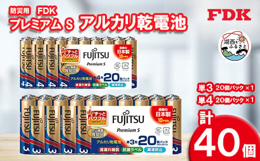防災用プレミアムSアルカリ乾電池セット_計40個 (単3・単4) 電池 セット_電池 乾電池 アルカリ電池 アルカリ乾電池 でんち プレミアムS 単三形 単四形 単3 単4 セット 災害 備蓄 防災 非常用 10年保存 アルカリ 富士通 メーカー 日本製 防災用品 日用品 保存 送料無料【1514699】