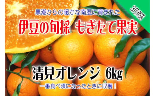【伊豆のみかん・柑橘】もぎたて果実 清見 オレンジ 6kg A025 / 収穫体験農園ふたつぼり 柑橘 フルーツ 静岡県 東伊豆町