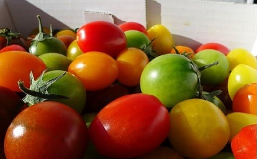 ミニトマトの一大産地、豊橋市が誇るカラー系ミニトマト『あまえぎみ』のクレア(イエロー、オレンジ、レッド)、あまえぎみ(グリーン、チョコ)、最高級高糖度ミニトマト「麗」の6種類を贅沢にミックスしました。糖度の高いフルーツのようなキラキラのミニトマトを是非、食べ比べてみてください。
