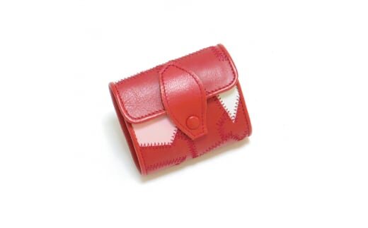 3つ折り財布 革のパッチワーク お札も小銭も入る「コロンとした小さなお財布」赤色【1210097】