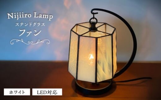 Nijiiro Lamp のステンドグラスのテーブルランプ ファン ホワイト / ランプ オリジナル ギフト / 瀬戸市 / Nijiiro Lamp [BBAD018]