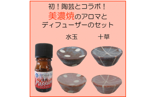 春日井市に隣接する岐阜県多治見市は美濃焼の産地です。その美濃焼の窯元「仙太郎窯」とのコラボ!初!美濃焼をイメージしたアロマオイルとディフューザーをセットにしました。情熱を意味する「パッション」の香りは、熱い思いと自然の豊かさを感じ、前向きで明るい気持ちに!